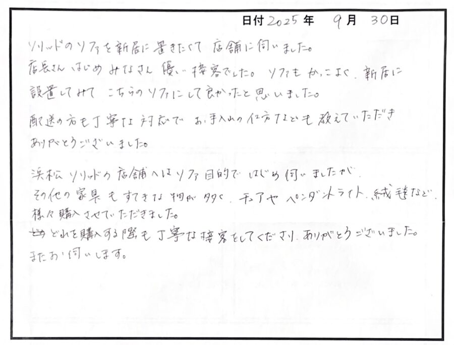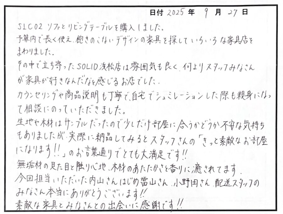 S様、この度はソリッド浜松で家具をご購入いただき、誠にありがとうございました!