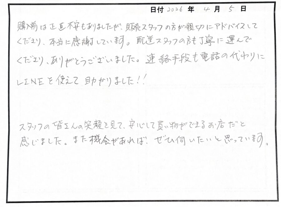 ご新居での新しい生活、新しい家具と共に楽しまれてくださいね。またのご来店も心よりお待ちしております♪