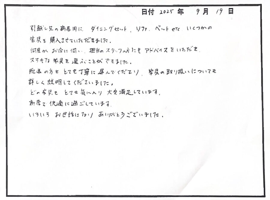 私も配送に同行させていただきました。出来上がったお部屋は柔らかく温かみのあるとても素敵な空間でした。